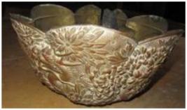 | Description / विवरण | Flower pot made of metal alloy most probably brass & some other metal having beautiful floral pattern on its exterior |