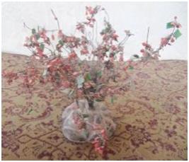 | Description / विवरण | A decorative plant, locally known as kareel ka jhar having its base made of wood, branches made of iron wire & flower & leaves made out of plastic. |