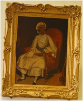 | Description / विवरण | Oil Painting on canvas portraying a Nazir, seated on a red cushioned chair. Fitted in an ornamental wooden frame. |