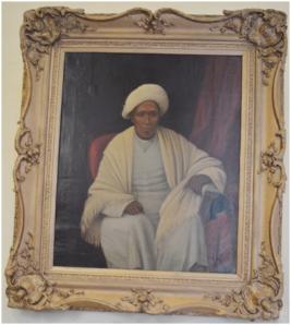 | Description / विवरण | Oil Painting on canvas portraying Nazir Basant Ali Khan, seated on a chair. Fitted in a wooden frame. |