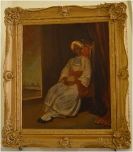 | Description / विवरण | Oil Painting on canvas portraying Nazir Ali Khan in sitting posture. Fitted in a wooden frame. |