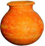 | Description / विवरण | A red ware pot with round base and globular body. It has slightly high neck with splayed out externally thickened flat rim. |