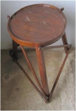 | Description / विवरण | Tripod or stool, having there slim legs of wood without any decoration & circular surface on top. |