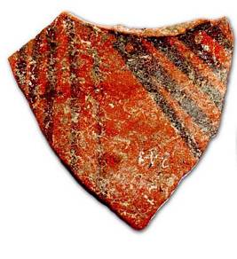 | Description / विवरण | Fragment of a red ware pot, painted with black colour, thick lines are drawn slantingly from the rim portion extended to the shoulders. |