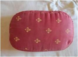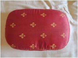 | Description / विवरण | Small size flat pillows red colour cover on which golden floral prints are present. |