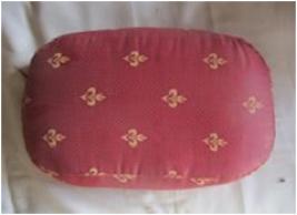 | Description / विवरण | Small size flat pillows red colour cover on which golden floral prints are present. |