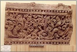| Description / विवरण | The sculptural fragment depicts creeper scroll within two horizontal borders. |