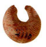 | Description / विवरण | Mullet having crescent shaped body having raised incurved ends. Each end has a small perforation. Multiple grooves on the body are prominently seen. |