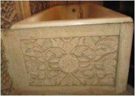 | Description / विवरण | Bath tub fixed with a carved case of sandstone |