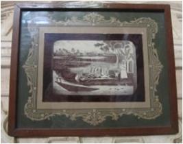 | Description / विवरण | A painting depicts Kevat Samvad in which Lord Rama, Laxman and Sita are tocking with Kevat to cross the river. |