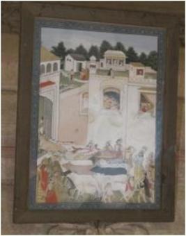 | Description / विवरण | A panting of Lord Krishna with a group of cows and the ladies are peeping through their windows. |