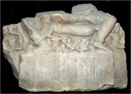 | Description / विवरण | A highly mutilated Uma Maheshwara only padapeeth portion. It contains Ganesa figure to the right side. |