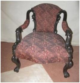 | Description / विवरण | Four wheeled single seated couch having raised back. All four wheels are missing. |