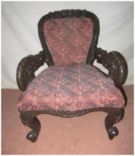 | Description / विवरण | Four wheeled single seated sofa having raised back & arms. In back right leg one small upper plate have been fixed which mention Gans kothi Bharatpur |