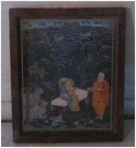 | Description / विवरण | Painting depicts Radha and Krishna with bearded man and two cows. |