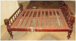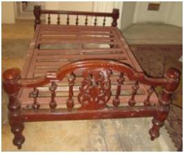 | Description / विवरण | Single bed palang raised on two sides & having carved designed four legs. The raised sides having beautiful carved floral pattern in jalli system. The parallel wooden, bars are arranged for fixing up the cushion. |