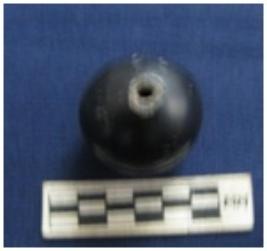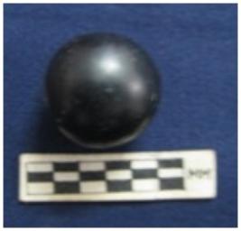 | Description / विवरण | Bead of spherical shape. It is blue in color with white banded and partially broken. |
