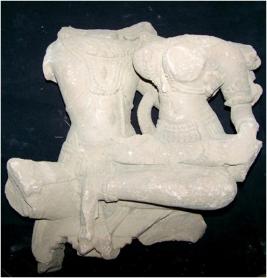 | Description / विवरण | Fragmentary remains of Uma Mahesvara image while hands and head are missing. |