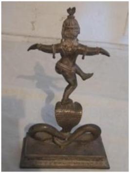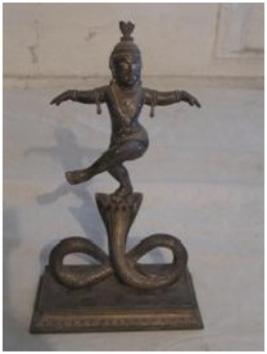 | Description / विवरण | A figure of Krishna dancing posture on Kaliya Naga. |
