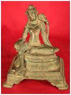 | Description / विवरण | The image is seated in Lalitasana posture on lotus pedestal. His right hand in varada-mudra rest on his right knee and his left hand hold a full-blown lotus which rest on his seat. He decked with a short ornamental crown, neckless, two strings, upavita, and armlet. His hair is arranged in Jatamukuta style. |