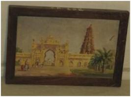 | Description / विवरण | Oil painting showing temple complex of south India. |