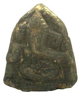 | Description / विवरण | Seated Ganesa with simple tiered conical head gear and elongated ear lobs, beaded Uddara bandha |