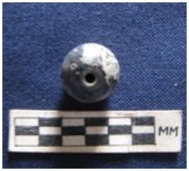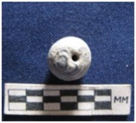 | Description / विवरण | Bead of spherical shape. It is white-blue in color and partially broken. |