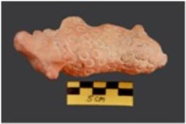 | Description / विवरण | Terracotta figuring of a sheep red brick colour, showing masterly modeling of the muscular body, decorated with punched circle design with two dewlap in a dynamic mood has been shown in a most realist manner. The incised lines are shown in the dewlap with the tail and legs are broken. |