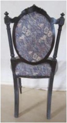 | Description / विवरण | Cushioned chair, without arm circular cushion on raised back, front two are decorative where as back two are simple. |