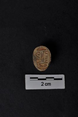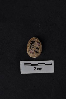 | Description / विवरण | Oval shape seal with flat base and spherical top, incised linear markings on flat base. |