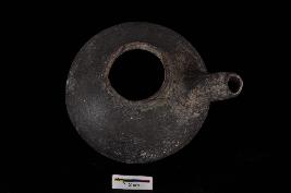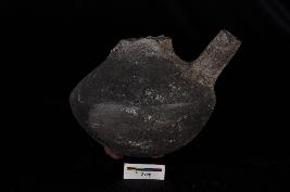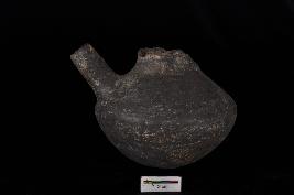 | Description / विवरण | Small spouted jar in black ware with a broken rim. |
