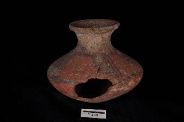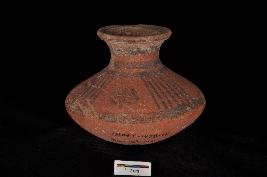 | Description / विवरण | A small painted globular pot with a high neck and rounded rim. It is painted on the outer surface in the form of vertical lines set in horizontal bands. |