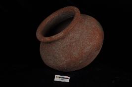 | Description / विवरण | A globular pot of Red ware with thick beaded rim. |