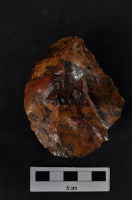 | Description / विवरण | Scraper, retouches on working edge, flaking on both surface. |