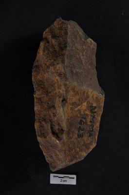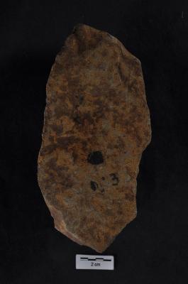 | Description / विवरण | Large flake, diffused bulb on ventral surface, striking platform visible, a ridge on dorsal surface. |