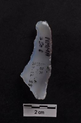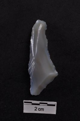 | Description / विवरण | Flake, roughly triangular in shape, retouches on all the edges. |