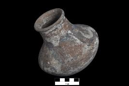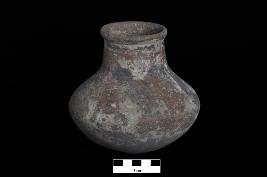 | Description / विवरण | A small lota with a squat body, vertical neck and a beaded rim. It is painted on the outer surface in the form of vertical slanting lines in between horizontal bands. |