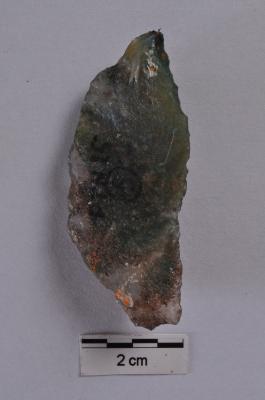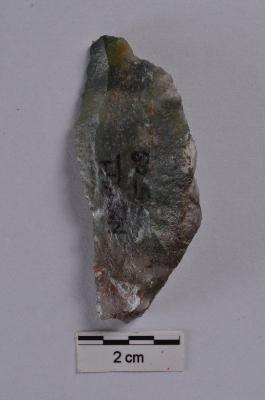 | Description / विवरण | Flake Tool, probably scraper, semicircular in shape, prominent bulb on ventral surface, prepare platform visible. |