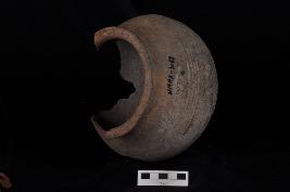 | Description / विवरण | Globular pot with a bulging body and an out-carved rim. |