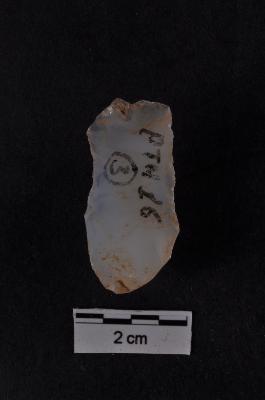 | Description / विवरण | Flake, diffused bulb with prepare platform at proximal end, ripple marks of another blade scar on dorsal surface. |