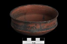 | Description / विवरण | A bowl with concave side & a featureless rim. It is painted over the concave sides in the form of vertical chevrons placed on a horizontal band. |