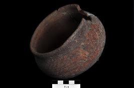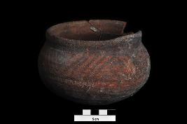 | Description / विवरण | A deep bowl with concave profile & a vertical rounded rim. It is painted on the upper part in the form of slanting lines and horizontal bands. |