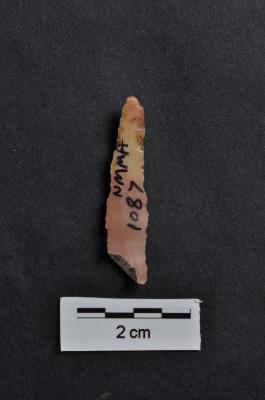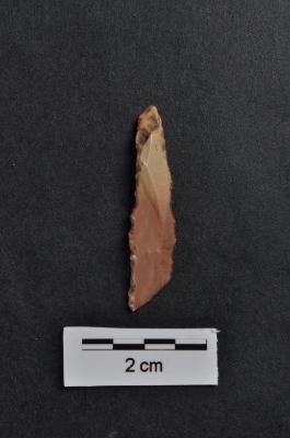 | Description / विवरण | Blade, proximal end broken, retouches and use-ware marks on working edges. |