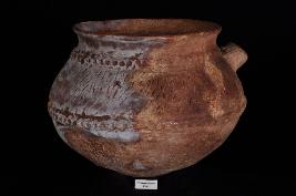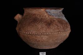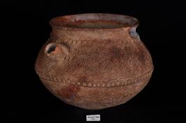 | Description / विवरण | Spouted jar with flat base, out-curved rim, squat shape with incised design. |