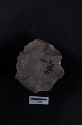 | Description / विवरण | Scraper, circular shape, retouches on working edge, fleke scars on one surface, cortex visible on another surface. |