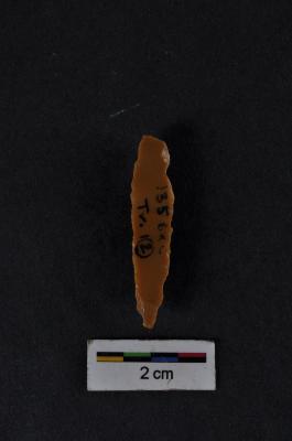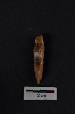 | Description / विवरण | Flake bulb absent, prepare platform visible, irregular ridge on dorsal surface, |