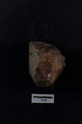 | Description / विवरण | Core, irregular shape, few flake scars on one side of surface and cortex visible on another side of surface. |