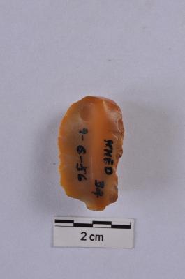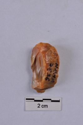 | Description / विवरण | Utilized flake, U shape, prominent bulb with striking platform at proximal end, use-ware marks on edges. |