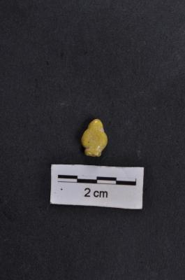 | Description / विवरण | Glass bead, uneven shape, with perforation, smooth shiny surface. |