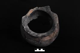 | Description / विवरण | A globular jar with an out-curved rim. The neck is decorated with cut marks. The lower half of pot is intentionally rusticated & it therefore seems to have been used for cooking. |